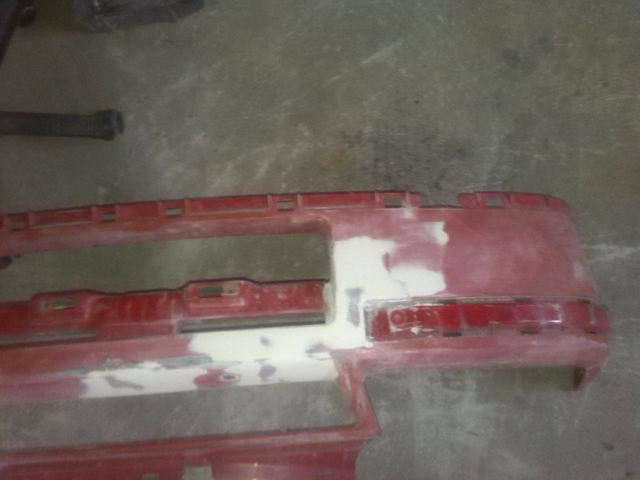 Al parachoques, despues de repararlo soldando plastico, si es que tenia grieta, hay que echarle masilla para plasticos, la negra, no vale la de chapa, ya que no es elastica, y al minimo movimiento del plastico del parachoques, se despega generando grietas en la pintura....