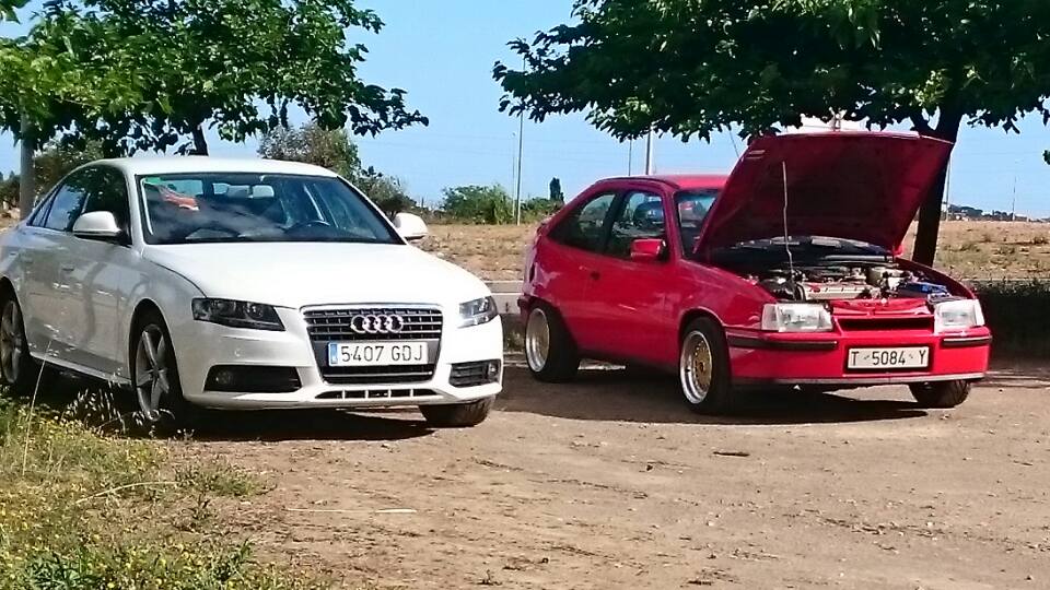 Pues resulta que hace 2 años o mas pregunté a un chaval por un kadett 16v rojo,lo que pasó es que no tenia tiempo porque viajaba y no me envió fotos ni pudimos quedar..total,que me olvidé...pues en agosto cuando estaba de vacaciones me llega un wasap diciendo si me interesaba el coche,que tenia junta culata y estaba ya comido del sol..de no utilizarse en un patio de una casa..tenia el aleron roto,no tenia caja del filtro,sin tapizado del techo..suspensiones k.o,ruedas k.o ,llantas de astra 16 ralladas y golpeadas,radiador perdia,perdia aceite,refrigerante,al limpia trasero no le llegaba agua,tapón deposito truñing,bueno y bastantes cosas que no me acuerdo a parte de la culata..Bueno pues resulta que me lo dejó bastante economico y me lo quedé!desde aqui dar las gracias a chacho240 y a boig porque sin ellos no hubiese sido posible.Entonces vendí el 8v para poder dejar este pata negra.Esto fue en setiembre 2014,y nos pusimos manos a la obra!!!