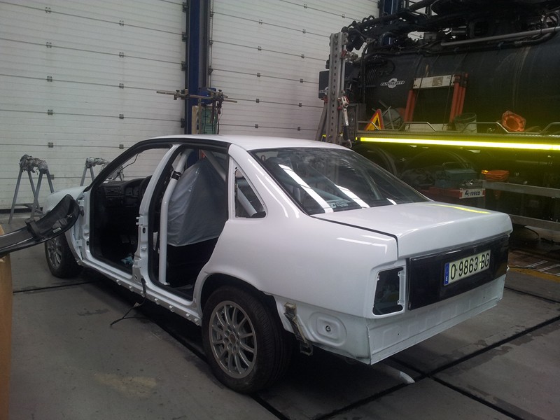 Recién pintado.Las puertas el capó y el maletero se pintaron junto con las defensas taloneras retrovisores y demás cosas en otro día pero no tengo fotos de ello. el kit 2000, sobre todo la defensa de alante dió bastante trabajo ya que tenia pintura cuarteada por todos los lados.
