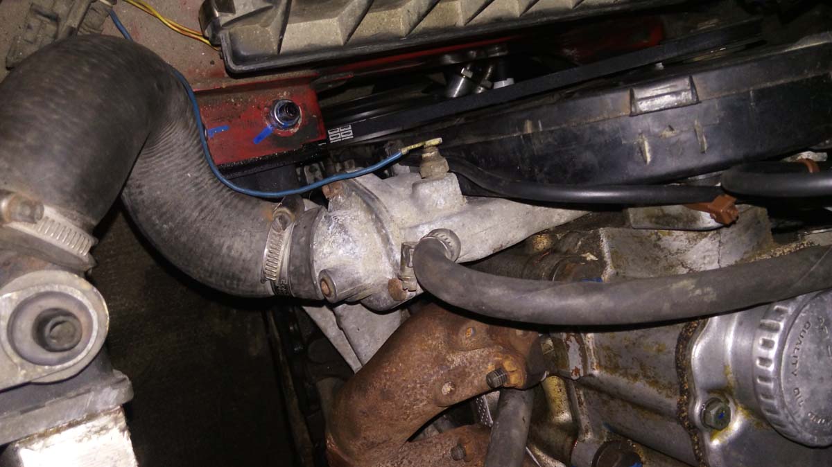 Los latiguillos ya estan puestos. He soltado la distribucion y he desmontado la pieza donde se ata el termostato.