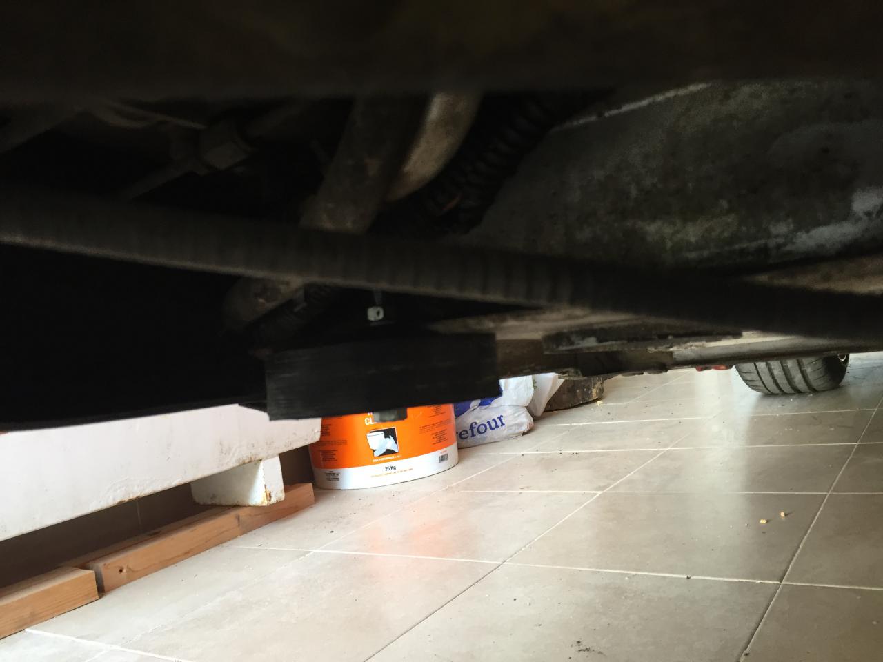El coche tal y como viene de serie no se puede subir al elevador, se podría caer hacia atrás por el reparto de pesos, para subirlo habría que quitar el fondo plano junto al difusor y poner los brazos del elevador justo donde el tornillo derecho que se ve en la siguiente foto