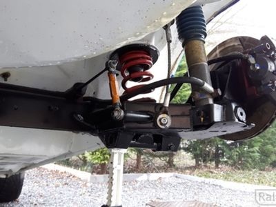 Sobre la estabilizadora, quiero empezar a hacer pruebas con un palier de corsa, aprovechando los estriados. E presentado el palier en su lugar junto con unos soportes/silenblock de estabilizadora delantera sobre el eje trasero, y así a bote pronto no pinta muy complicado el tema. Algo asi: