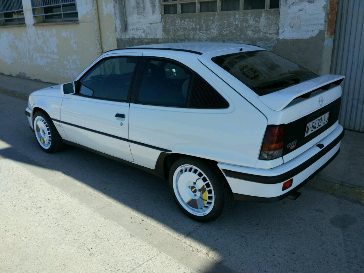 Segundo punto, estoy transformando el Kadett en un 16v, he puesto las pegatinas del 16v, incluso la del volante; llevo el pomo del 16v, pondré el tubo del 16v, etc., e iba a poner el puente trasero de discos pero procedente de un Astra 8v, pero me encuentro que con las llantas ahora ya rozo en el paso de rueda, tendré que abrir un poco, de manera que si pongo el puente trasero de Astra tendré que abrir bastante más ya, porque es más ancho.
