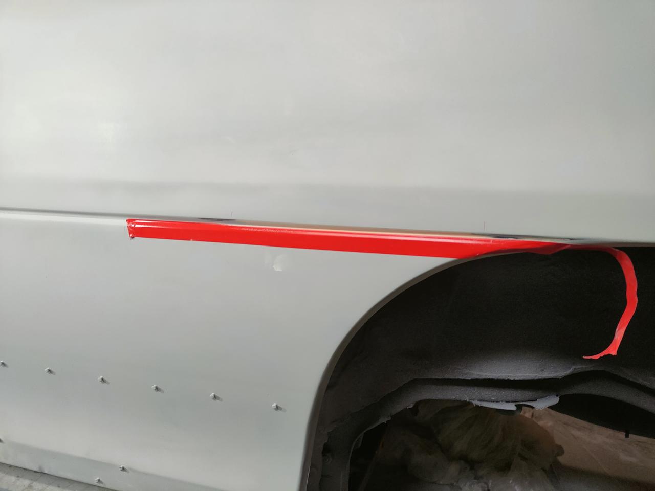 Aqui, la linea de la aleta, no la dejaron muy recta...No me di cuenta, hasta que no empecé a lijar el aparejo, cosas que pasan...