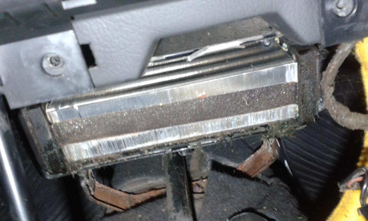 Cuando quites el plástico donde va puesto el cenicero y demás, debajo, veras como una especie de caja negra, con 4 tornillos, cuando los quites, ahí tienes el radiador, si lo has suelto de los manguitos del motor, lo sacaras sin dificultad