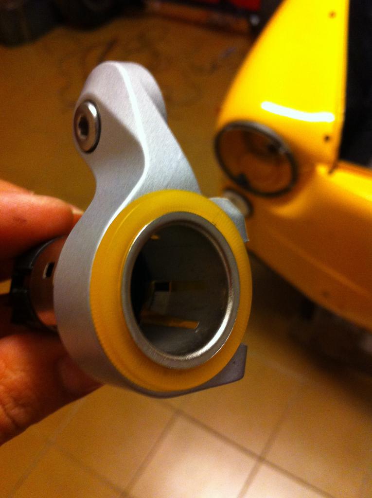 dado que de vez en cuando habrá que hincharle la ruedas... o cargar el mobil o enchufarle cualquier cosa, que menos que dotarle de un mechero. Fabricado con un soporte de cambio de marchas de bici... tal que así