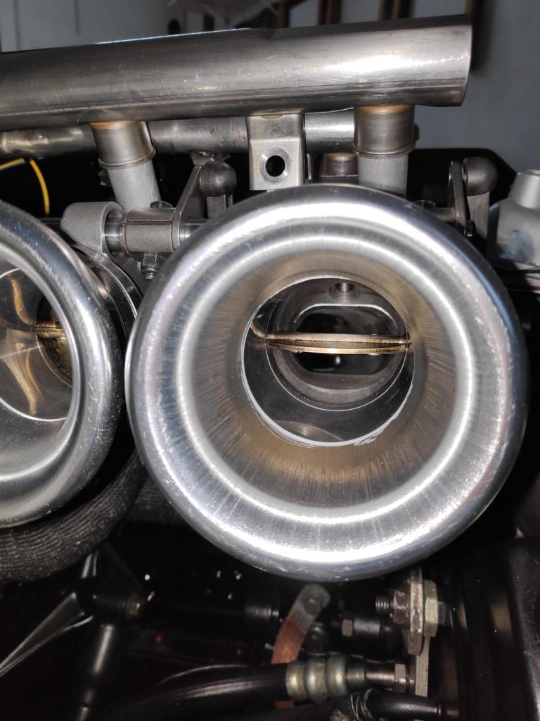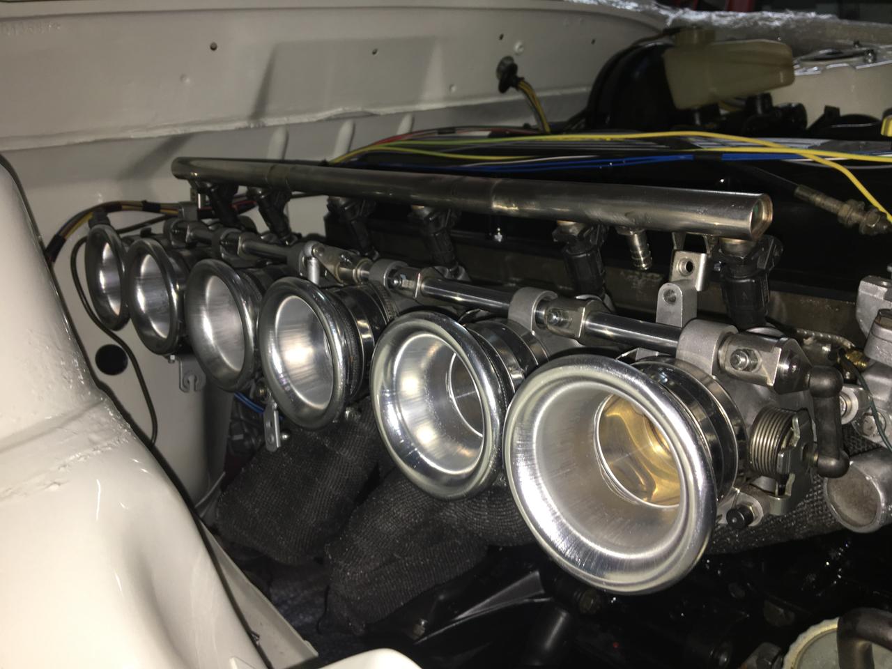 No recuerdo si lo había comentado, pero en las fotos también se aprecian las soldaduras en la rampa de inyección y de vacío, que corresponden a los tramos que se tubieron que separar los cuerpos de admisión de BMW, para dejar espacio a los colectores de escape. Y también se cambió el sistema para los tubos de entrada.