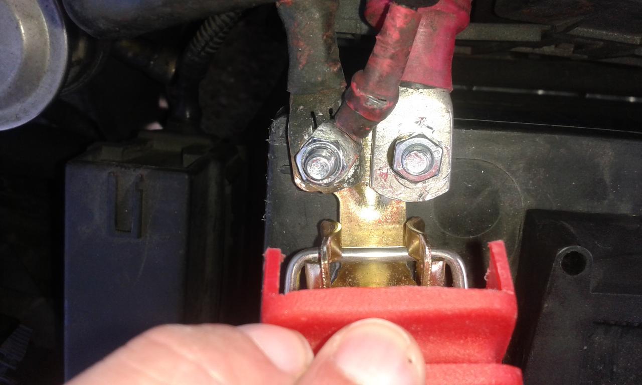 Le puse al coche un desconector de batería dado que se tira períodos prolongados parado y en la calle para más inri, que penita de él, jaja.