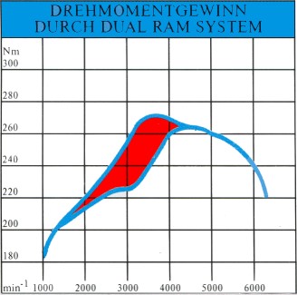 Nop, esta gráfica es al reves, el ram activado vs ram funcionando normal, la menor curva es ram activado continuamente, viene a decir el par que se pierde funcionando en bajas como un 6 cilindros normal, me he colado con la gráfica, era como un ejemplo de como trabaja un dual en estos motores, salvo que en tu caso es a la inversa.