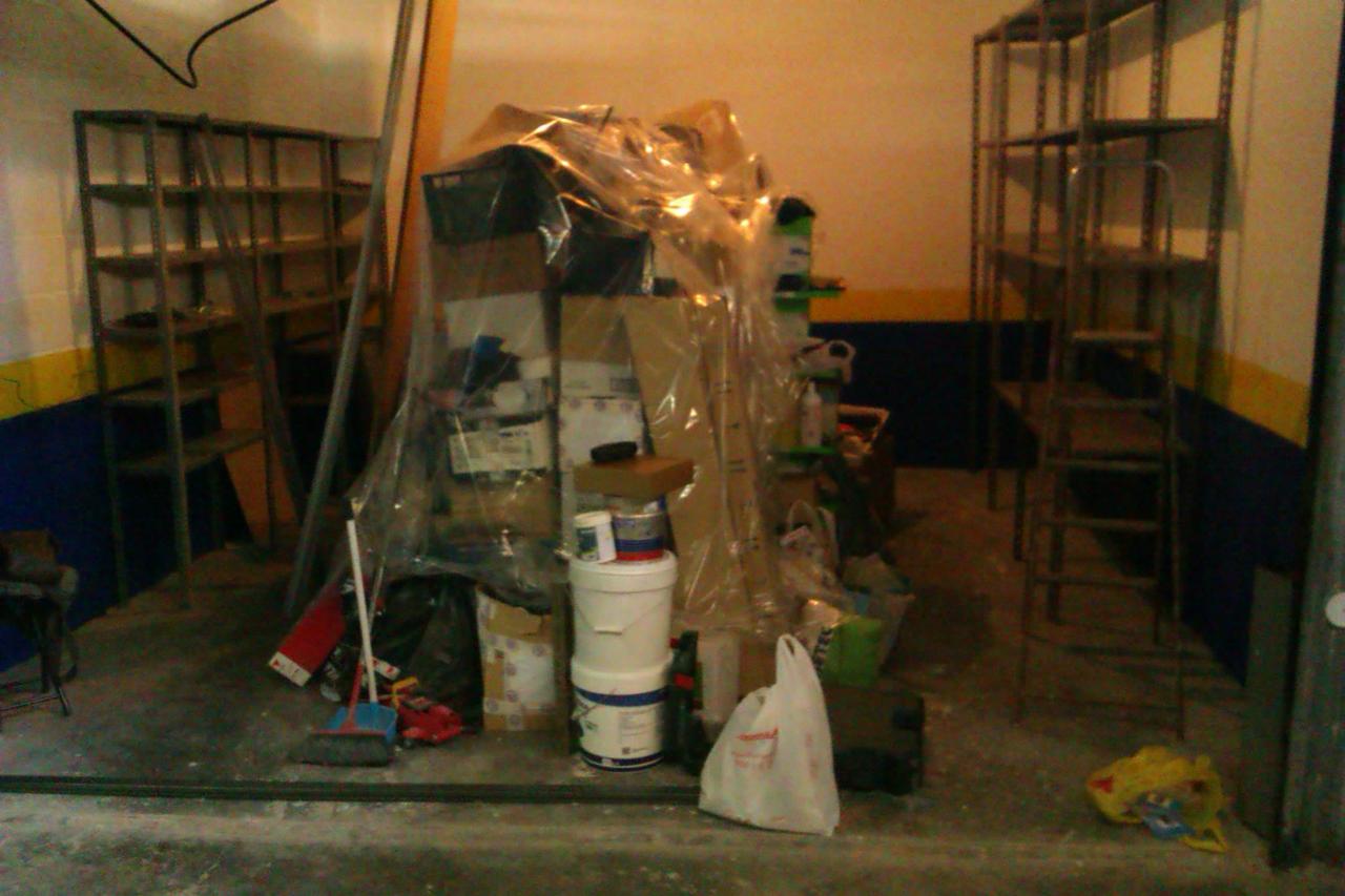 He estado fijando las estanterías a las paredes, llenándolas más o menos de forma ordenada (no solo hay cosas mías) y ordenándolo un poco.