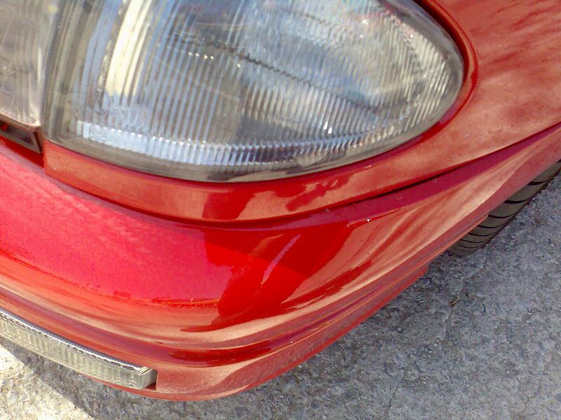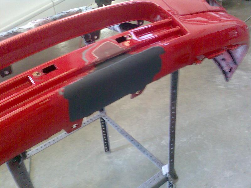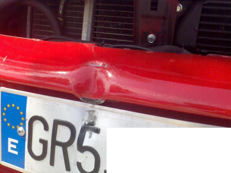 Bueno, ya esta arreglado, la parte del bollo del paragolpes. Al final la maquina esa no era tan espectacular, era como un soldador de estaño, en el que regulabas la temperatura segun fuese el tipo de plastico.