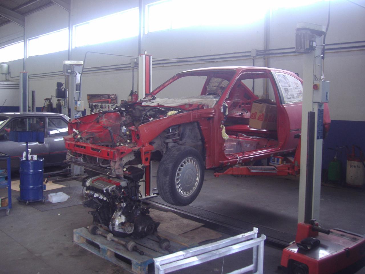 Pues tras muchas horas de trabajo casero 100%, procedí a llevar el coche al taller de unos familiares, dónde trabajaría con ellos codo con codo todo el verano de 2011 para saber adelante el kadett, en este estado llevé el coche:
