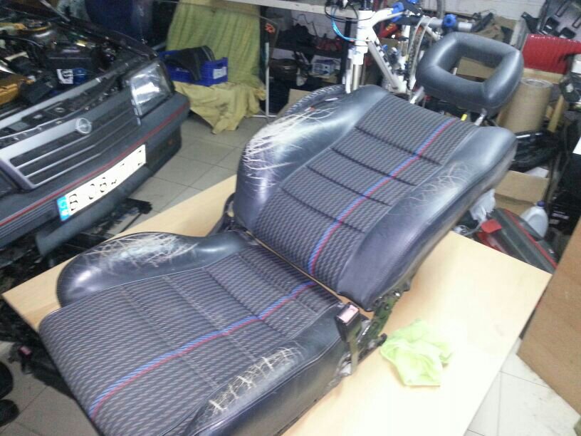 Los asientos de omega estaban destruidos, gracias a bixo que reconstruyeron con cuero likido y tinte pero el del conductor era insalbable asi al final mi madre me hizo los 2 delanteros nuevos...