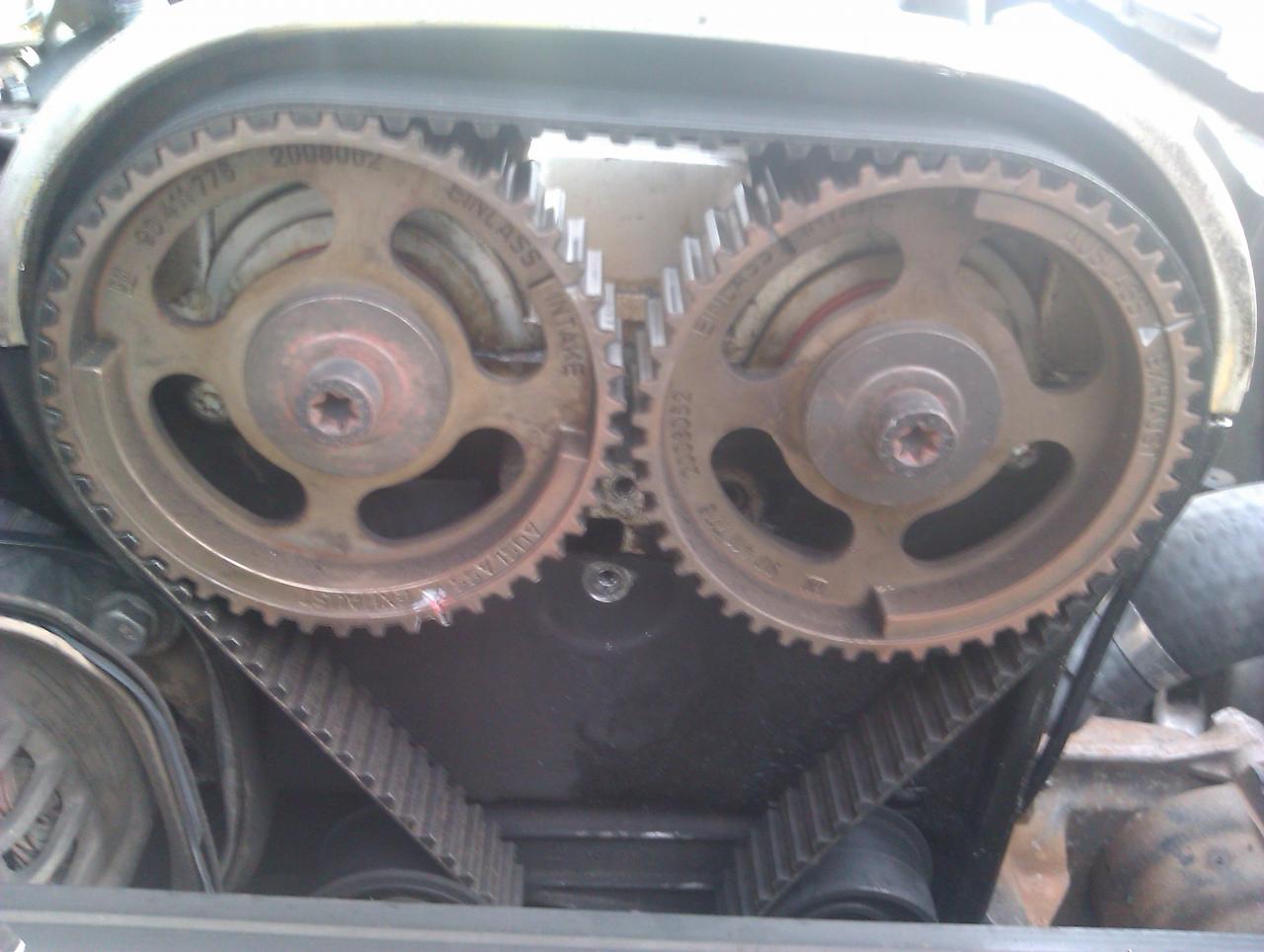 Esa foto es de tu coche? O me lo parece a mi o si sigues girando las poleas en sentido horario, las marcas no van a estar las dos hacia arriba, que es como deverian estar.