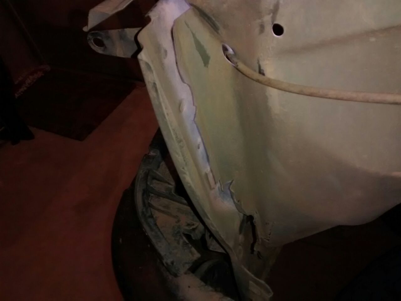 no se si se aprecia bien en las fotos, pero se está soltando todo el guardabarros de la carroceria, vamos que hay que soldar urgentemente y no queremos perder la mitad del coche...