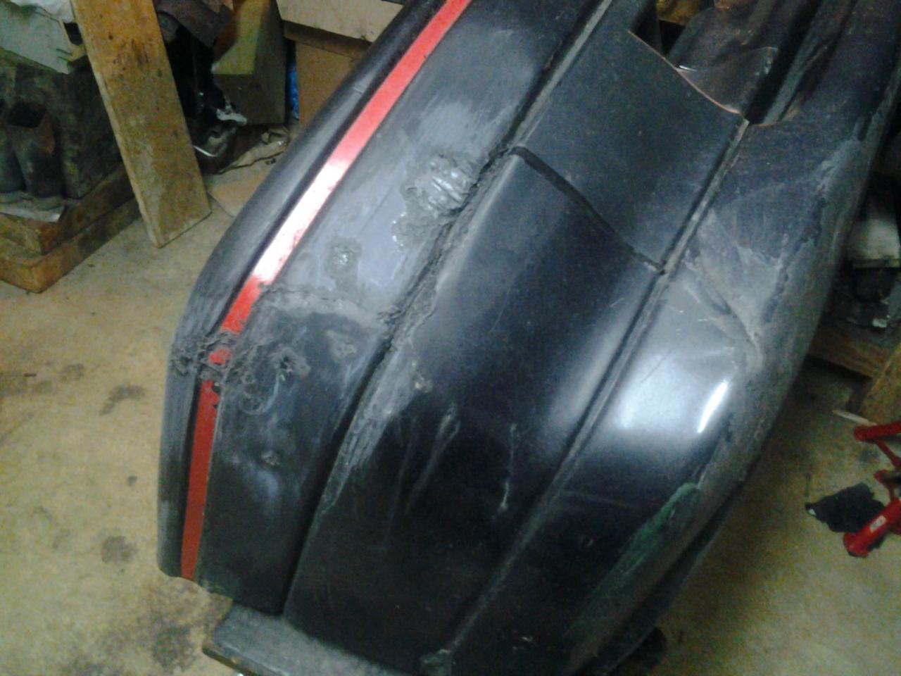 Nada mas traer el coche nos pusimos manos a la obra para desmontarlo. El parachoques delantero estaba rajado, y ante la imposibilidad de encontrar uno, decidimos repararlo, con ayuda de un estañador y aportación de plastico: