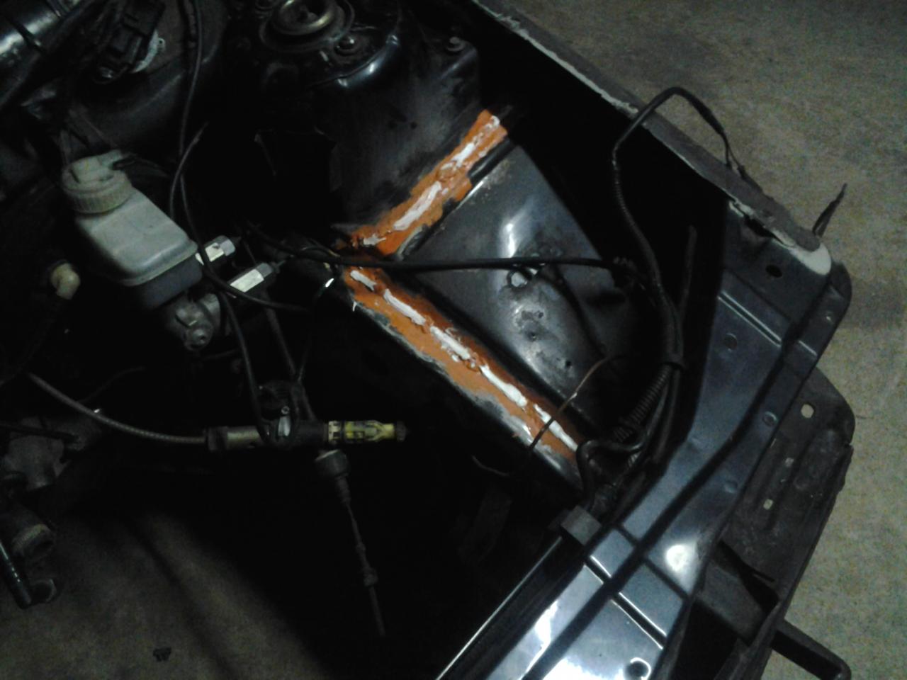 Aprovechando que teniamos el motor fuera, procedemos a sanear las partes necesarias y resoldar las punteras así como las torretas para darle un extra de rigidez. También le colocamos el refuerzo que traen los corsa b de fabrica para la cremallera de dirección, ya que posteriormente seria imposible colocarla con el motor puesto.