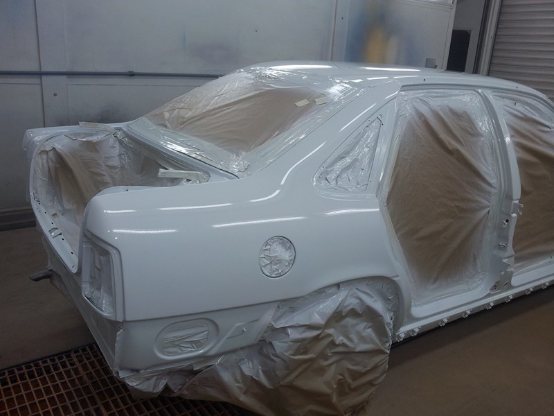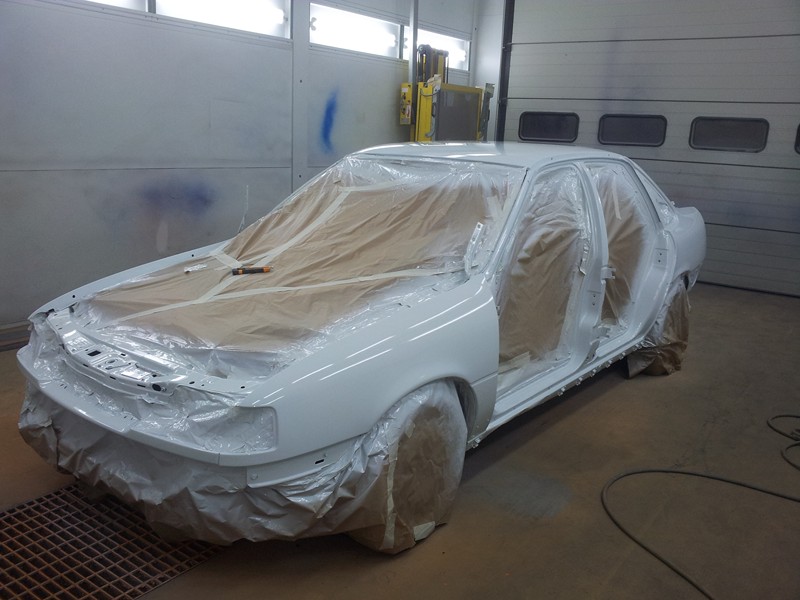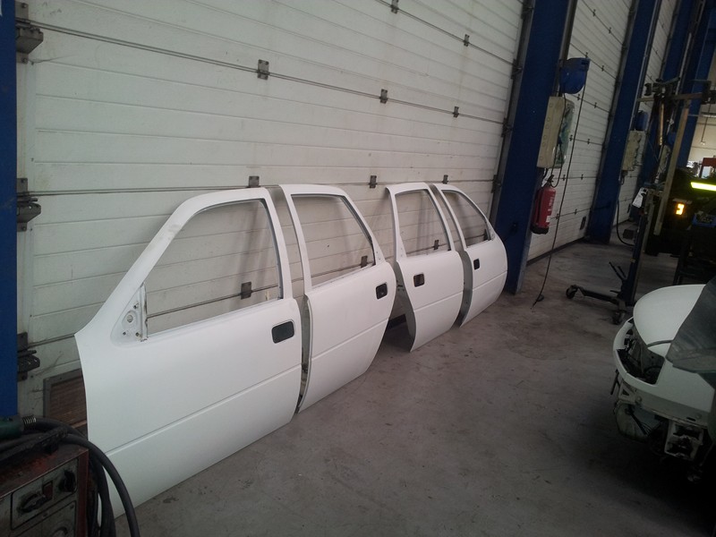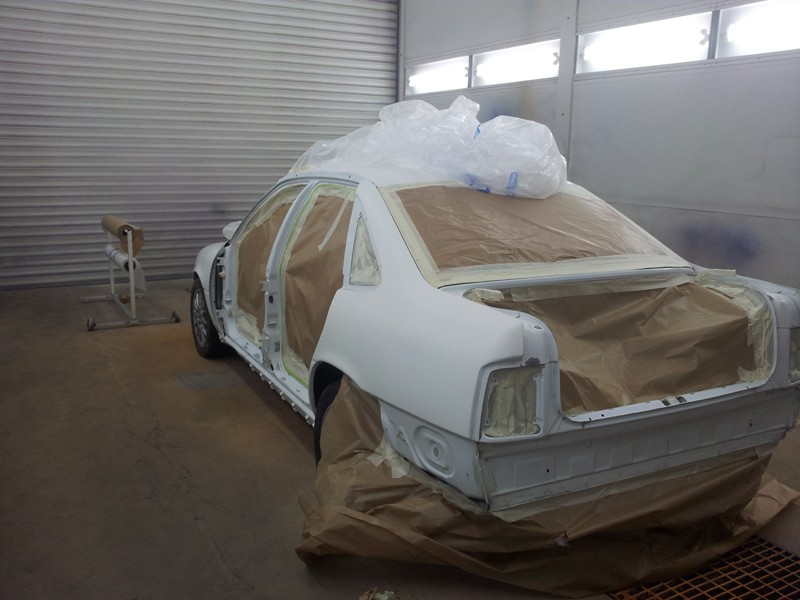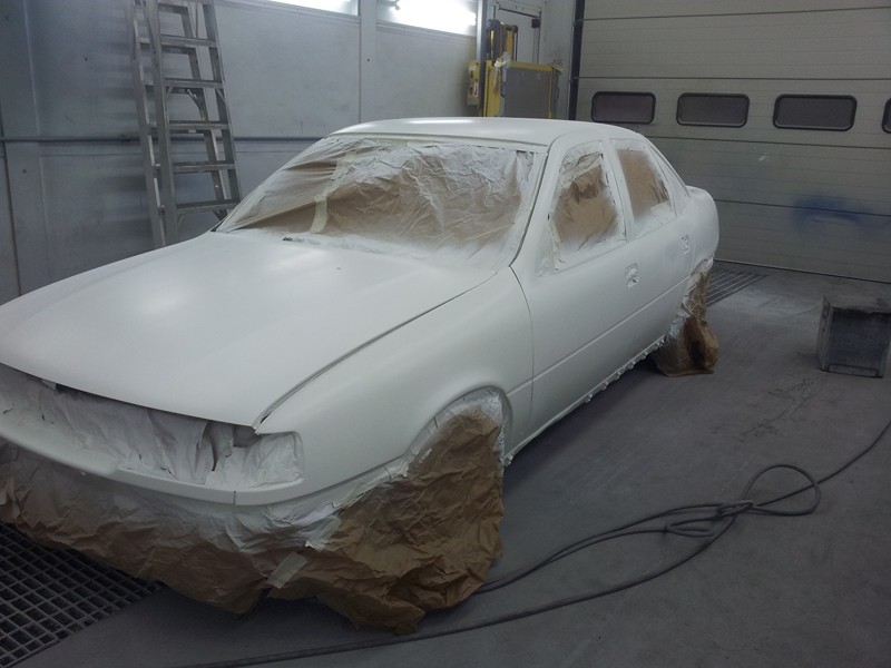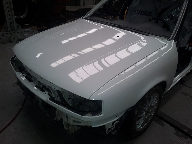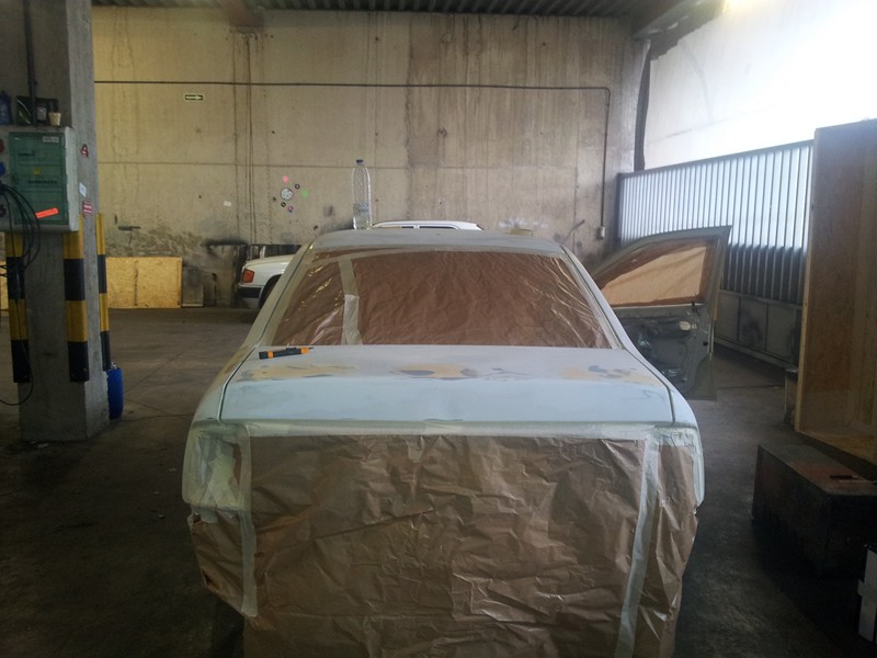 Recién pintado.Las puertas el capó y el maletero se pintaron junto con las defensas taloneras retrovisores y demás cosas en otro día pero no tengo fotos de ello. el kit 2000, sobre todo la defensa de alante dió bastante trabajo ya que tenia pintura cuarteada por todos los lados.
