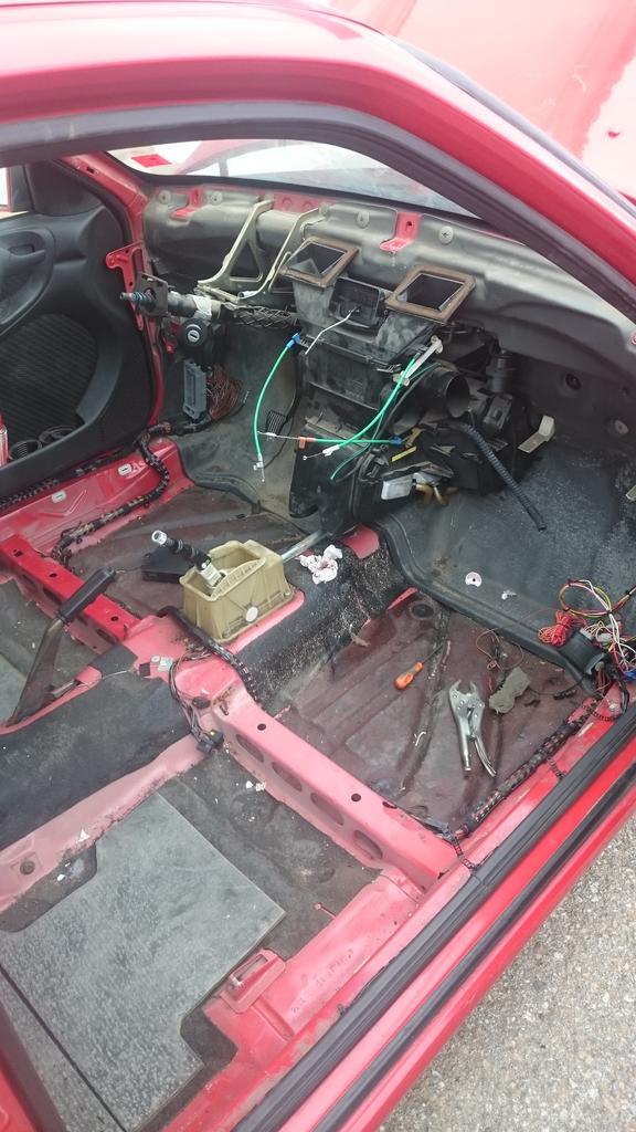 Pues vamos avanzando, se ha reencintado parte de la instalación y se ha montado completamente, modifique por la parte del vano motor la salida del módulo de calefacció/A.a, hice una plantilla y como se puede ver me equivoque a la primera jeje el circulo es del diavia y el marcado para el de opel, estaba la opción de intercambiar la salida de uno a otro y asi evitar el cortar la chapa, pero prefería no toquetear mucho el modulo, y poco más, el salpicadero esta montado y las moquetas secandose, ya mismo tengo el interior completo, a falta de tapizar el techo, y en breves tocara cambio de corazón