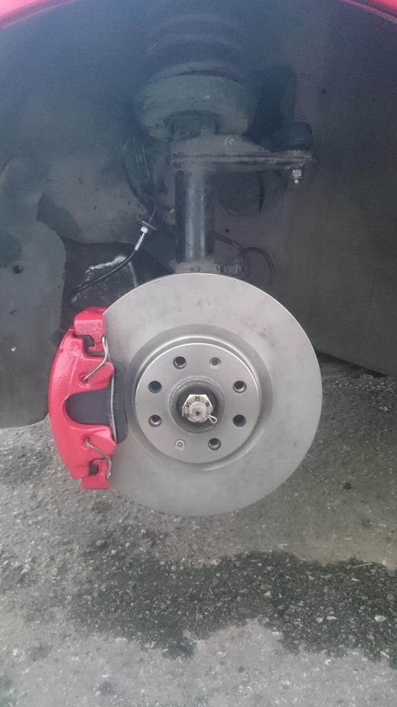 Y traigo algunas novedades aunque son pocas, tras recopilar en estos días mas piezas para el astra hemos hecho upgrade de frenos, como es sabido he optado por la versión plug&play que esta formado por discos de freno de cosra D en 284mm de 4 taladros para ahorrarnos el modificarlos, pinzas de freno de vectra b ref: Ate 57/25 y centradores para los discos de 56'60 creo recordar a 60'00 y ya puestos he montado unos latiguillos metalicos HEL con el recubrimiento en negro.