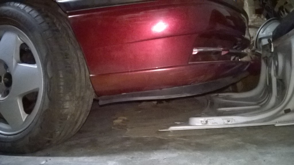 El labio ese de goma blanda lo compré en...no recuerdo si ebay o aliexpress. Lleva adhesivo doble cara 3M, pero yo taladré paragolpes y le puse remaches de plástico de esos negros que tienen un pasador en el centro.