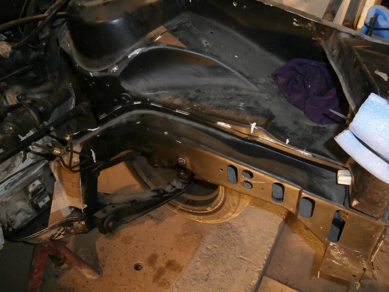 Así, ya montada la parte delantera, mientras llega el momento, aproveché para dejar al aire la chapa para darle esta semana los cordones de soldadura pertinentes. Tras ver que el cepillo de puas va lento lento, he probado con la Dremel y la fresa (bueno, las fresas, varias han quedado en el intento), con buenos resultados, dejando en chapa viva una zona pequeña pero suficiente para la soldadura. Me quedan varias zonas donde darle matarile aún.