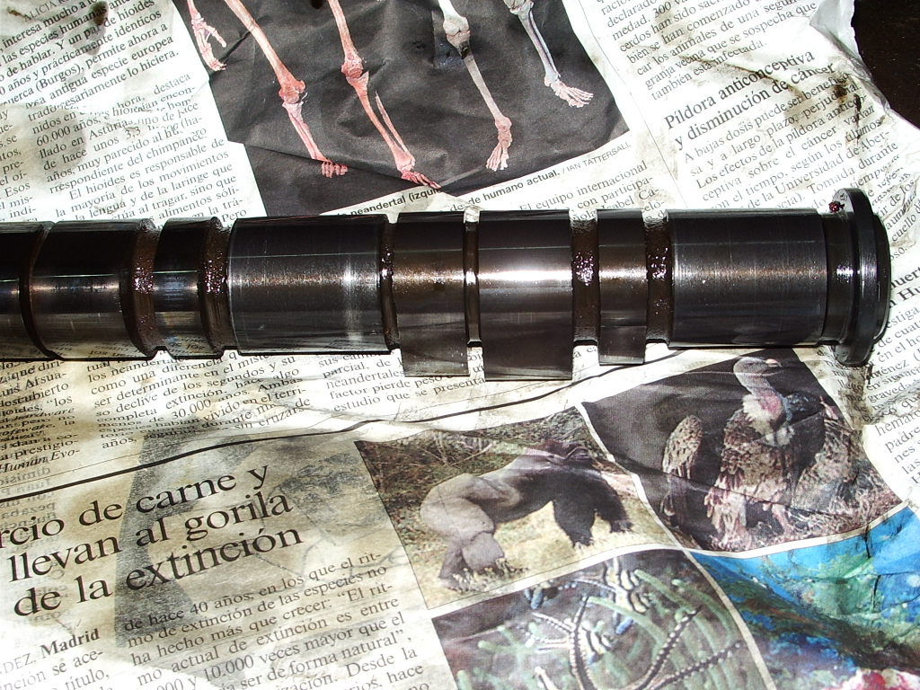 Detalle de los arboles de levas, las tres levas son diferentes, con la leva central empieza el desmadre...