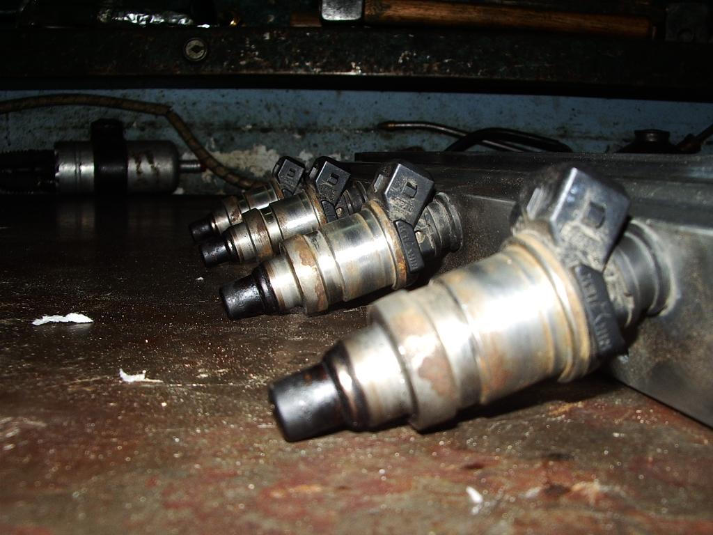 Aqui la rampa de inyectores, a la que le saque bastante roña también, los inyectores, marca Keihin, como los carburadores de las Kawasaki jejeje.