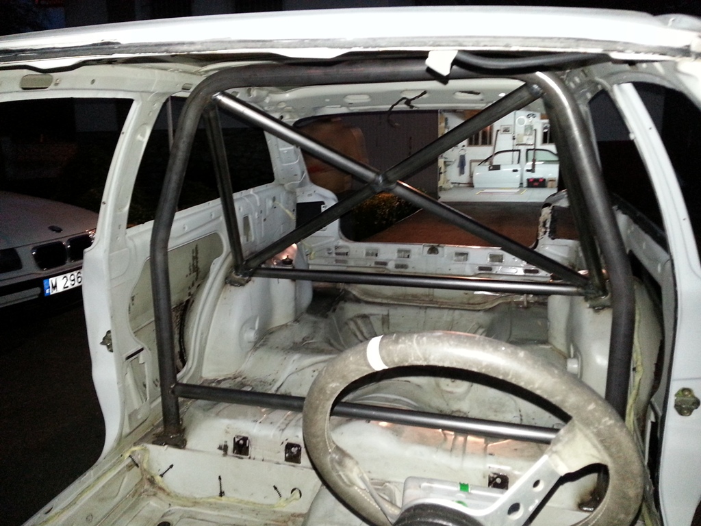 Con las manguetas puestas y el motor arrancando , pues se le da la primera vuelta,después de muuucho tiempo sin rodar .... y la verdad es que va de lujo , desalineado completamente , sin capot , defensa , faros ni nada ,y con un reloj de presión de turbo de oxigas que lo sacávamos por la ventanilla jajaja..... pero muy bien de motor , con una patada tremenda (esa fue la sensación que nos dió) . Tampoco anduvimos mucho , solamente teníamos la dowpipe puesta y ni eso jjajaajja..( a día de hoy sigue sin escape , creo que será lo último que le haga ).