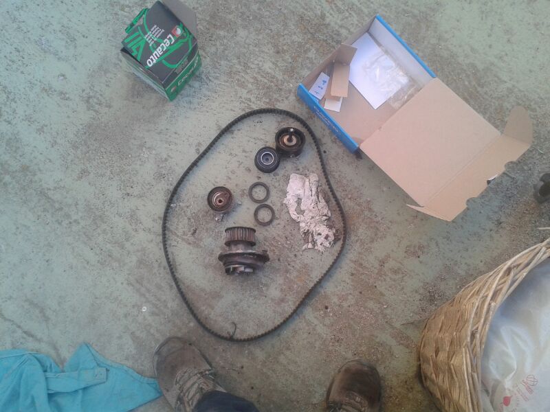 os dejo unas fotos del proceso limpieza y cambio de correa,bomba,rodillos, juntas ,retenes y kit de embrague.