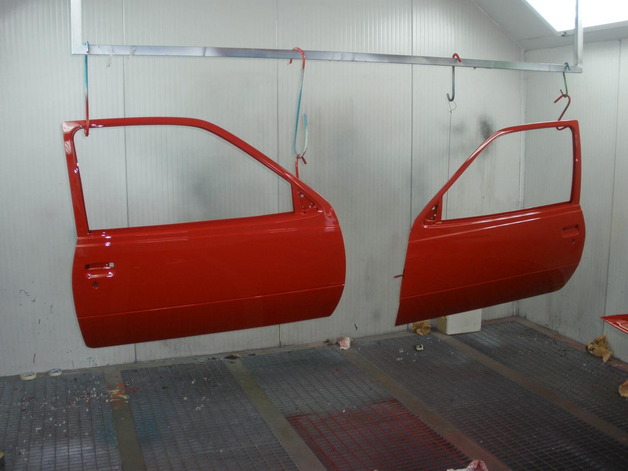 Bueno señores, pues tenemos novedades, el portón del maletero, las puertas y el capó han pasado por la cabina de pintura!! Después de currar me pasé por el taller y mi sorpresa fue mayúscula, lo mire todo muy por encima pero el resultado me pareció bueno, quedaron algunas pequeñas motas en alguna zona interior del capó, pero nada del otro mundo