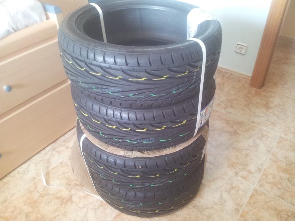 Y porfin tambien ... Pneumaticos nuevooooos !!!!!!! Preguntando en muchos sitios donde me salia mas barato alfinal fue por internet y hace 3 dias me llegaron los TOYO TIRES T1-R