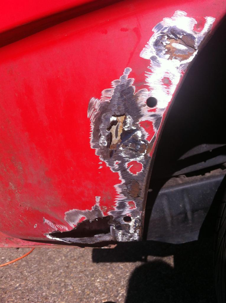 En la aleta izquierda habia mas problema, porque estaba podrida entera, estaba lleno de barro por dentro, yo creo que por culpa de los vierteaguas, asique corte, medi, solde, desbarbe, di aparejo, masilla, aparejo otra vez y pinte, por dentro y fuera (la pintura de fuera no es la misma y tampoco quedo perfecto, es solo para adecentarlo, porque en no mucho espero pintarlo en una chapisteria: