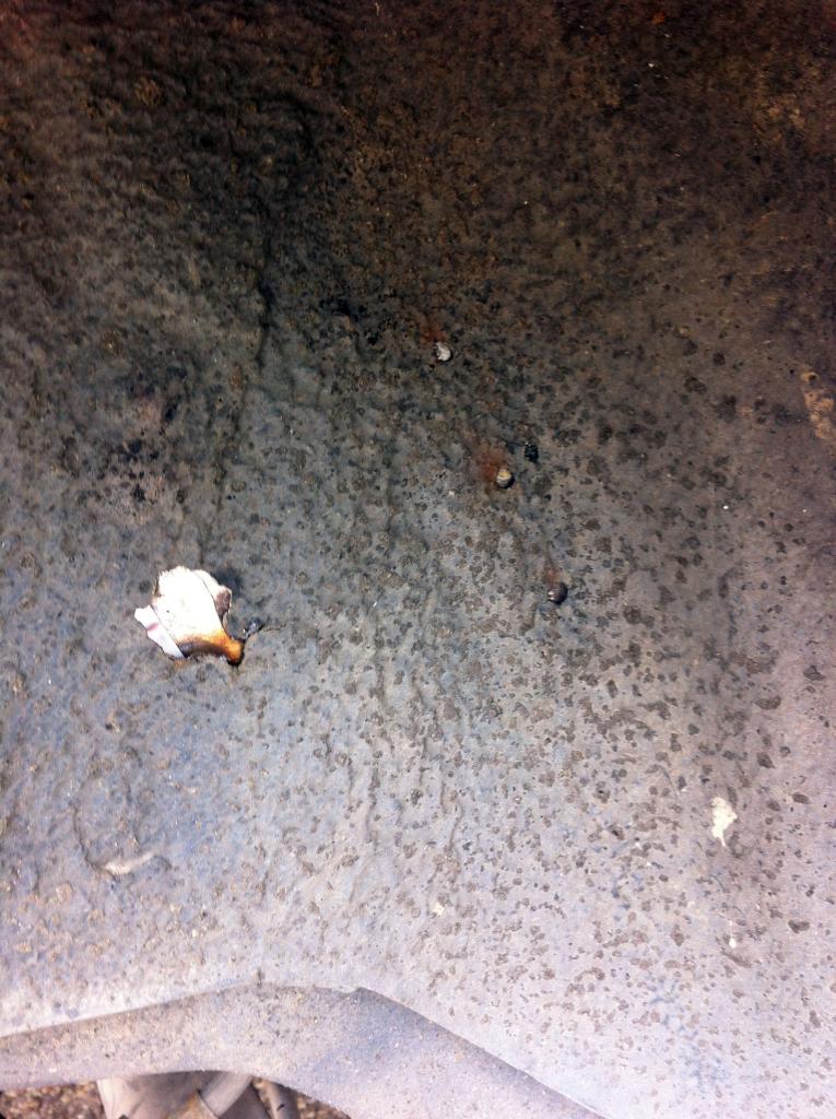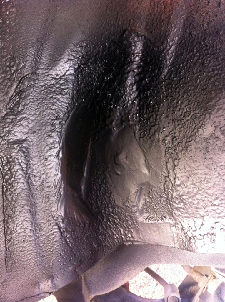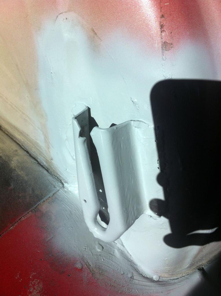 3. Los anclajes de los asientos traseros estaban medio arrancados y se habia hecho agujero del guardabarros para dentro, con el consiguiente oxido, asik los arranque, limpie por dentro y fuera, volvi a soldarlos en su sitio y por fuera di convertioxido, aparejo y antigravilla, y por dentro convertioxido, aparejo y pintura:
