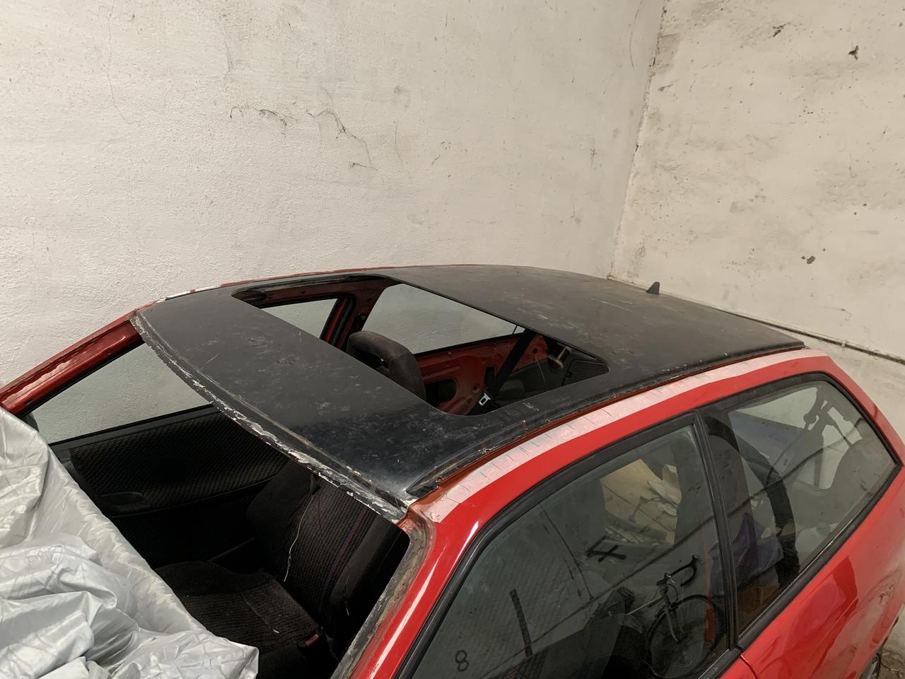 Pues lo que empezó siendo un aburrido día de confinamiento, termino siendo un par de días de mucho entretenimiento; fui a arrancar el coche y al final empece con la lista de tareas pendientes, que no es otra cosa que el techoswap. Cabe decir que estoy intentando hacerlo todo por mi cuenta, intentare dejarlo totalmente preparado para llevar a pintar.