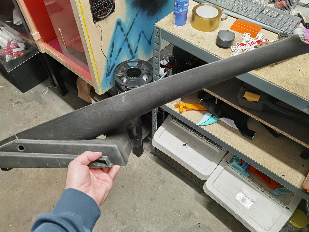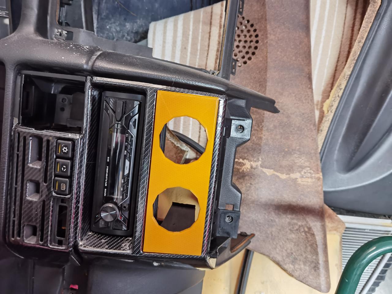 Con respecto a piezas del interior, como ya he comentado anteriormente, estaba todo en la mierda, arañazos, en algunos casos tornillos, superglue, grapas, etc... Asique estoy vinilando todas las piezas del interior.