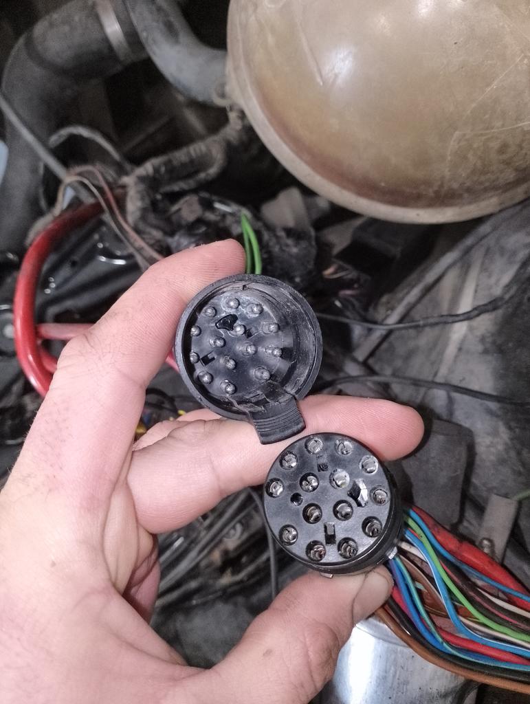 En la foto no se aprecia pero el conector del 16v lleva 12 cables de los 14 posibles. En los dos que faltan llevan una especie de tapón pequeño por detrás que parece original.