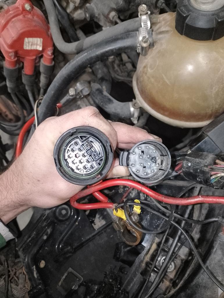 He soltado al 8v la famosa piña X5, la que une la instalación del motor con la de la parte interior para ir identificando cables y colores. También tengo identificados los colores y la posición en la piña del 16v. La sorpresa que me he llevado es que la piña del 8v y la del 16v son diferentes. La del 16v tiene conectores tipo faston y la del 8v son redondos.