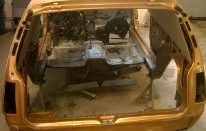 Tenía por ahí la página donde se ve como le meten un V6 y le hacen entera la parte de atrás, metiéndole creo que la tracción 4x4 de un calibra. Tirando de radial y soldadura para rehacer todo el bajo trasero.