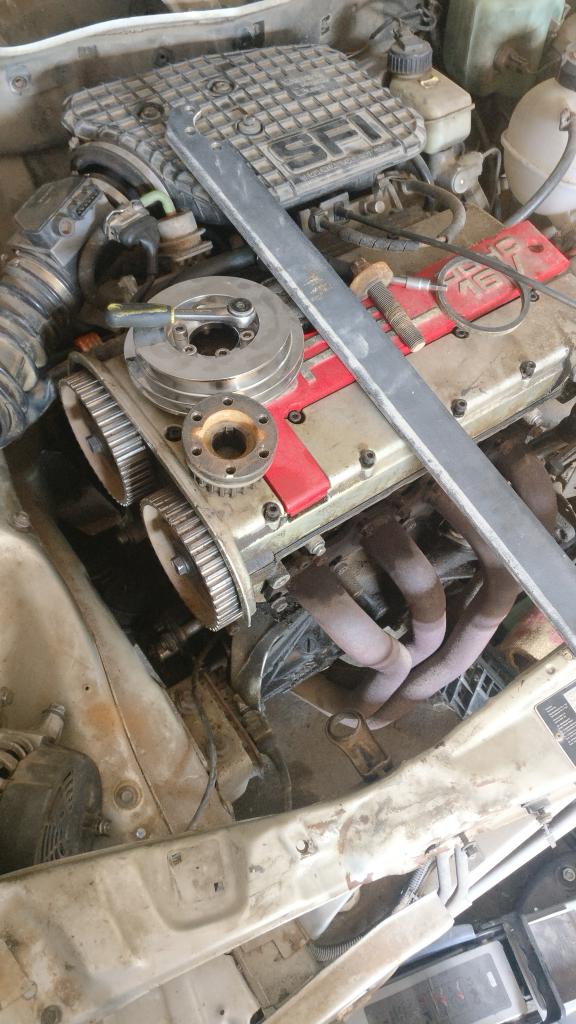 Por ahora, distribución fuera, y hasta me he hecho un inútil para sacar la polea dentada del cigüeñal.
