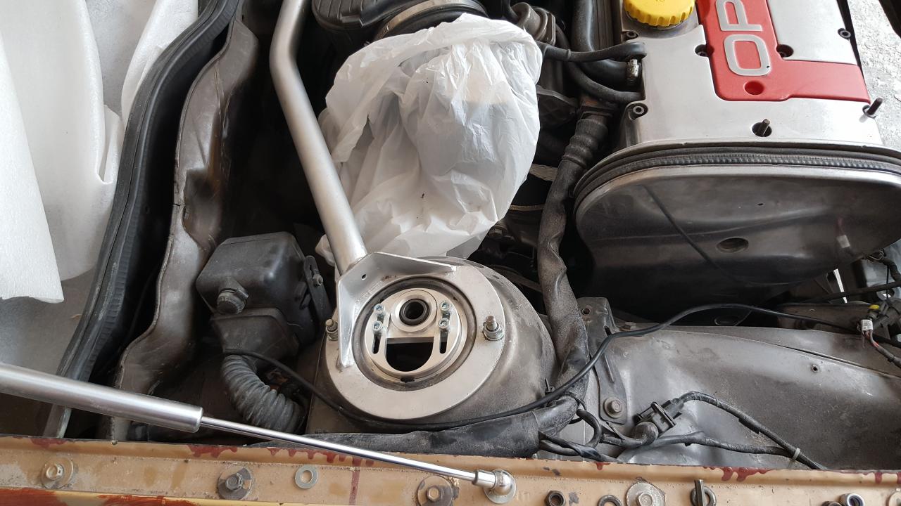 Una vez terminado de cuadrar toda la carrocería a los pocos días recibimos las copelas regulables delanteras que la conseguimos mediante un amigo traidas de polonia y la tapa de bujias vauxhall.
