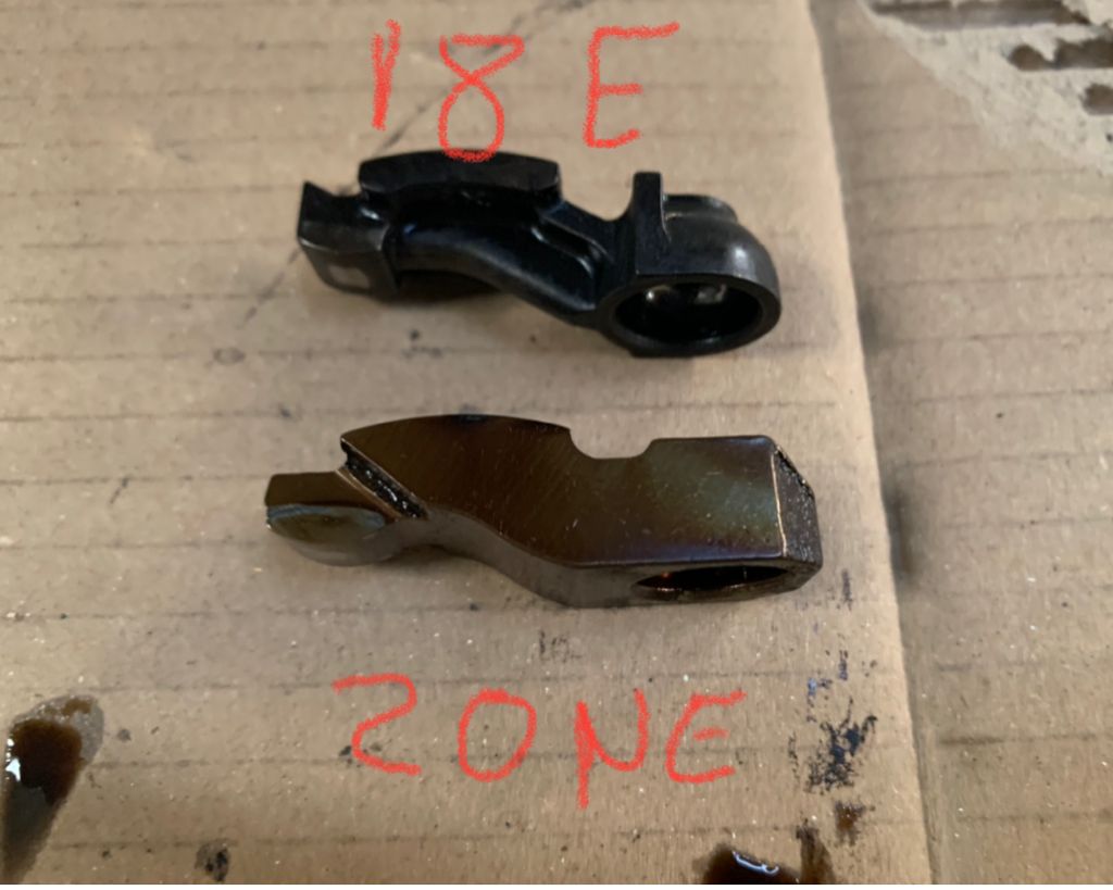 bueno pues aqui teneis los balancines, en la forma son algo diferentes, pero vienen a tener la misma medida, lo que si es de diferente medida son los taques, que pese a tener el mismo diametro en del 18E mide 66mm frente a los 68 del 20NE, cuando mirë la culata uno de los taques estaba flojo.. y pense en poner uno del 20, pero veo que no va a poder ser, tendre que abrir el SE para ver como son