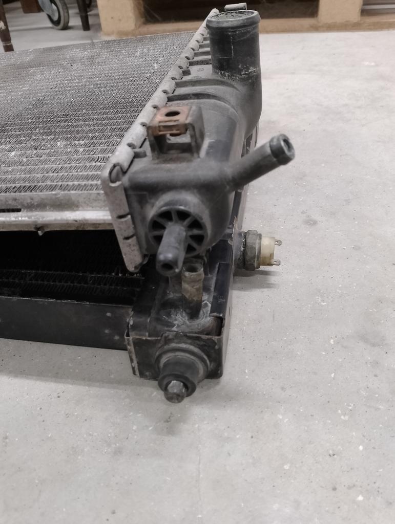 He empezado con la adaptación del radiador de 16v que ya compré. El que tenía creo que es de Astra 16v. La altura es la misma, cambia la longitud, el termo-contacto tiene 3 cables frente a los dos hilos del Kadett, y la posición de este cambia al lado contrario. El electroventilador es común para ambos.