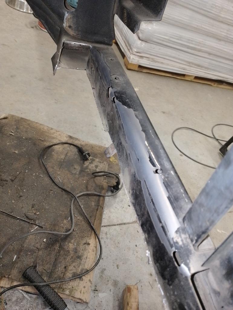 He cortado parte de la vigueta inferior y la he doblado por la mitad para evitarme soldar ese vértice, ya que la maquina que tengo de soldar es de electrodo, y lo veo difícil que lo vaya a conseguir. Tengo en mente comprar unos electrodos de 1,5mm y probar a ver si no agujerea mucho. La nueva vigueta del apoyo del radiador la fabricaré con perfil de carpintería metálica. Se que no es la manera mas profesional de hacerlo pero creo que es rápida y puede quedar curioso.