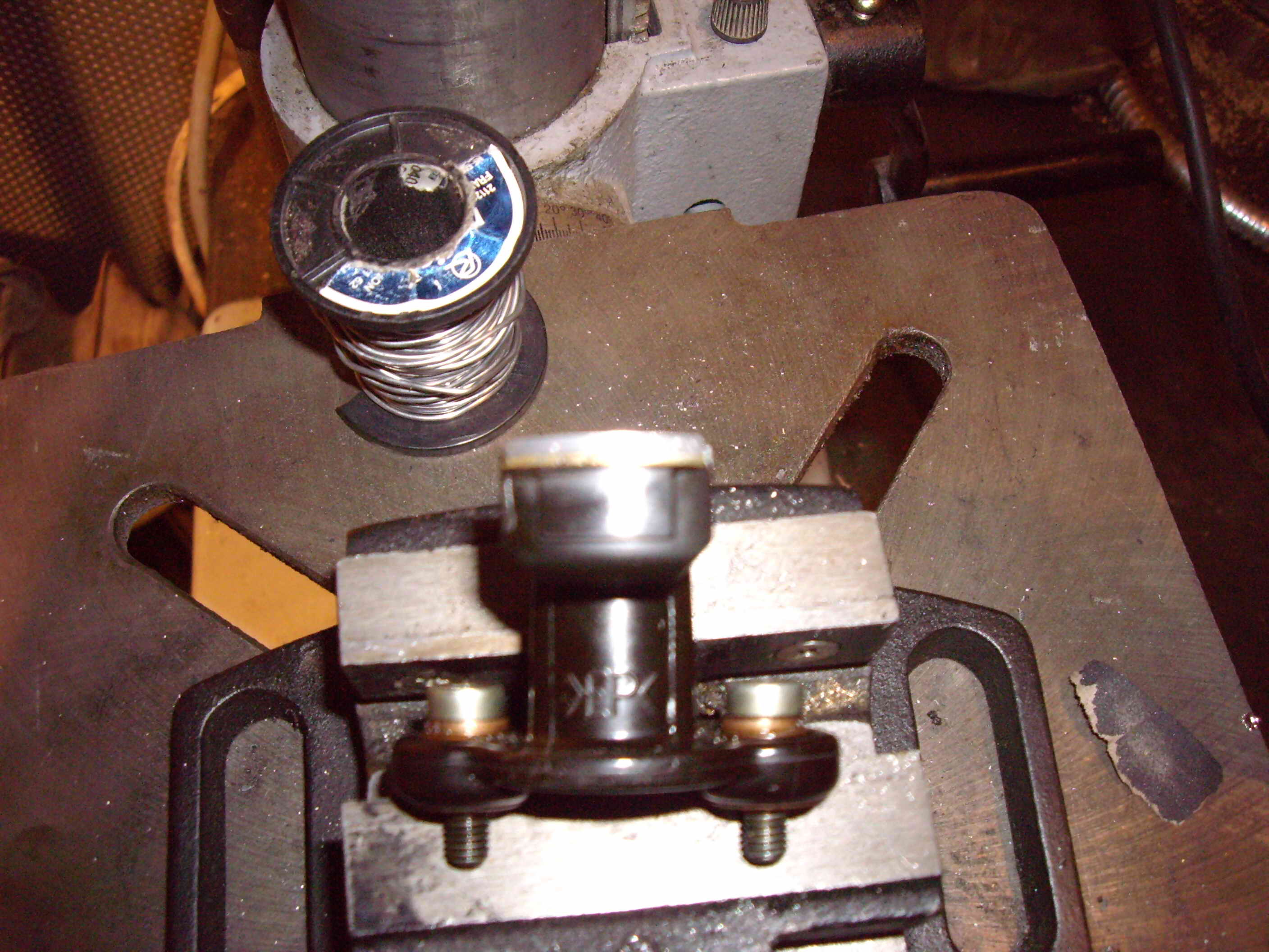 Mucho cuidadito con el estaño..., los conectores de la pipa son de latón y el latón es de lo peor para estañar, vamos que en el latón la soldadura de estaño no agarra como debe, si se tratara de cobre... las soldaduras quedan perfectas, pero con latón... hay que tener mucha paciencia y ser muy meticuloso....