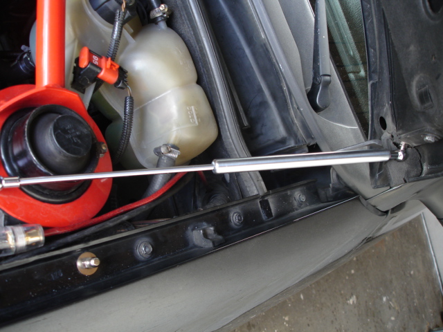 Lo mio son dos amortiguadores normales y corrientes de capo, pero vamos que lo ideal es Aprovechar el mismo tornillo de aleta, y no te preocupes que para eso estan los topes del capo, para que no se pasen.