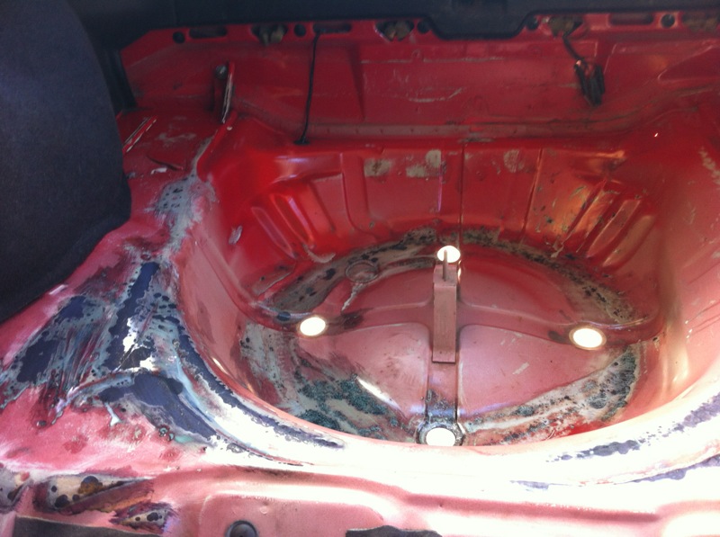 Cuando le quitaste el óxido en la zona de la rueda de repuesto, a la hora de pintar luego, pintaste con pintura de "coche" o con spray rojo sin mas?