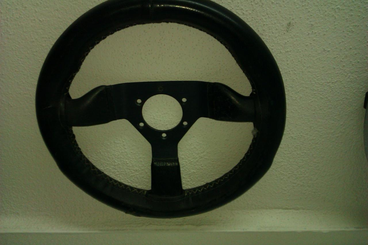 • Volante Momo 28 cm. Muy chulo, para conducir como un kart, pero hay que tapizar, creo que lo "marqué" cuando mi accidente, jaja, 30 €