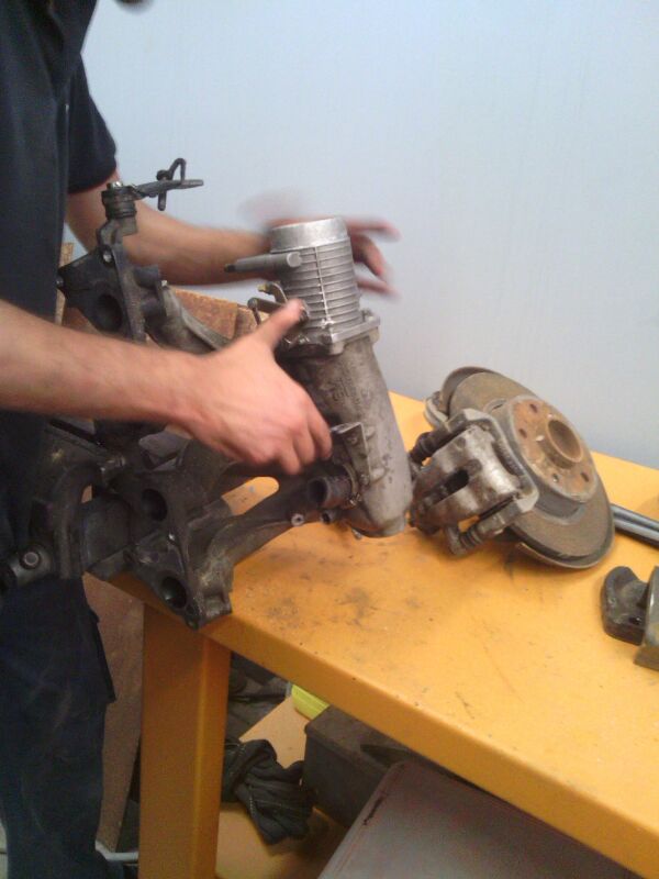 bueno pues ya he empezado con el coche primero se le a echado un manguerazo que parecia que habia terminado un dakar xDDDD, luego me he puesto a sacar el cubre carter, ruedas, amortiguacion trasera, y el colector de admicion para adaptar la mariposa del omega.