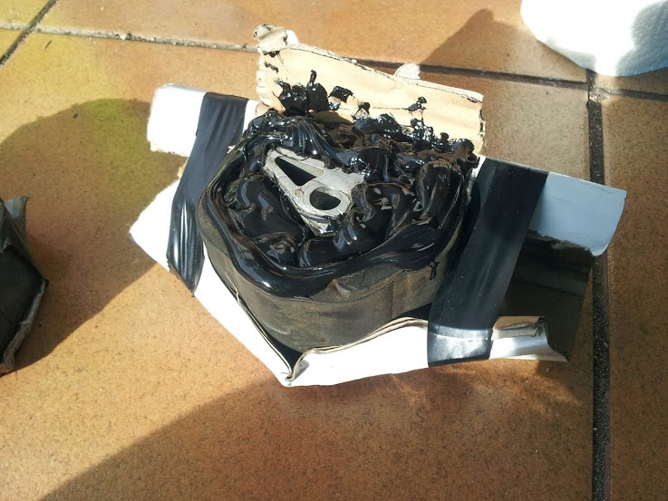 Ahora solo falta esperar y montar. En teoría la masilla de poliuretano tarda 24h en secarse, pero como hemos puesto muchísima cantidad junta, hay que dejarlo secar al menos 3 dias. Después, con un cutter simplemente quitamos los sobrantes.